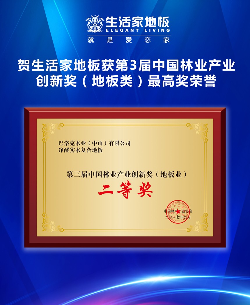 中國林業(yè)產(chǎn)業(yè)創(chuàng)新獎(jiǎng)是我國林業(yè)行業(yè)科技進(jìn)步、產(chǎn)品創(chuàng)新方面的最高獎(jiǎng)項(xiàng),由中國林業(yè)產(chǎn)業(yè)聯(lián)合會(huì)、中國林產(chǎn)工業(yè)協(xié)會(huì)組織,經(jīng)過行業(yè)專家對(duì)申報(bào)企業(yè)和項(xiàng)目進(jìn)行嚴(yán)格初審、復(fù)審和綜合審查。生活家凈界系列地板在眾多申報(bào)項(xiàng)目中脫穎而出,榮獲第3屆中國林業(yè)產(chǎn)業(yè)創(chuàng)新獎(jiǎng)(地板類)最高獎(jiǎng)殊榮,這是對(duì)生活家在除醛技術(shù)上所付出努力的肯定和鼓勵(lì)。